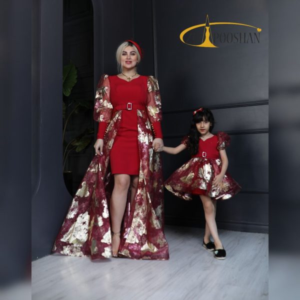 پیراهن مجلسی ست مادردختری مدل طلاکوب