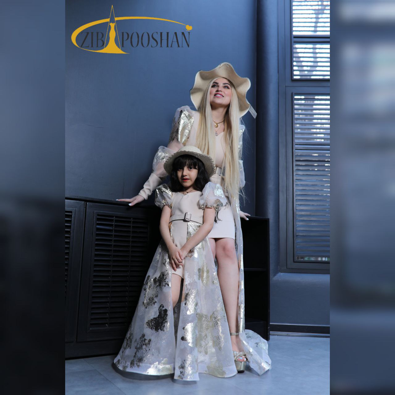 پیراهن مجلسی ست مادردختری مدل طلاکوب