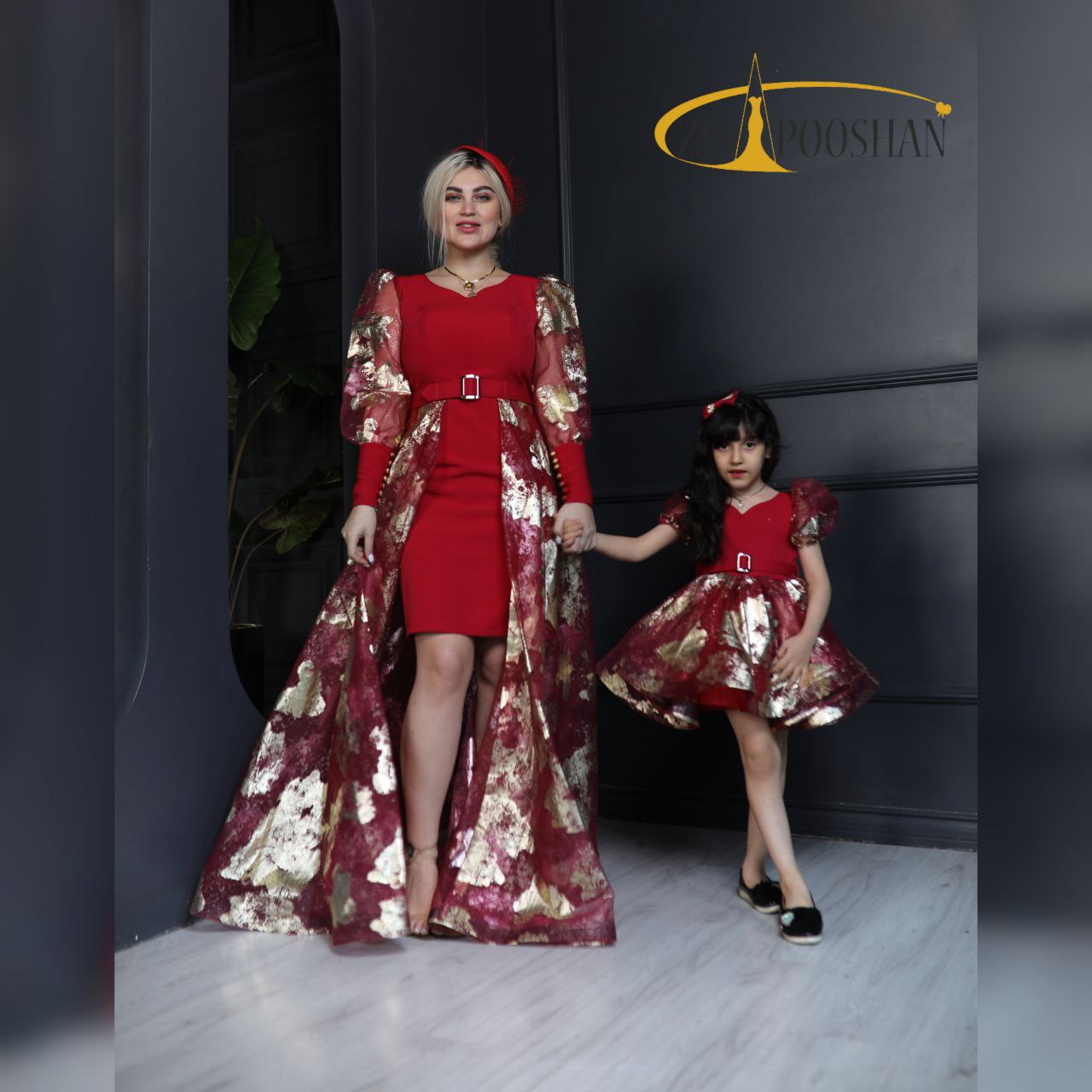 ست مادر و دختر مجلسی بلند مدل شقایق قرمز